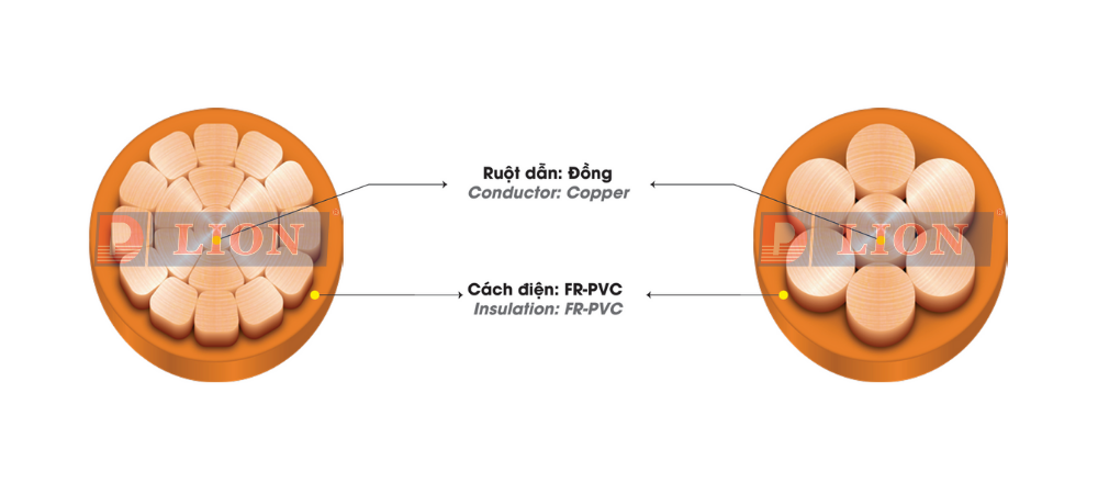 - Cáp chậm cháy, ruột đồng (Cấp 2), cách điện FR-PVC.